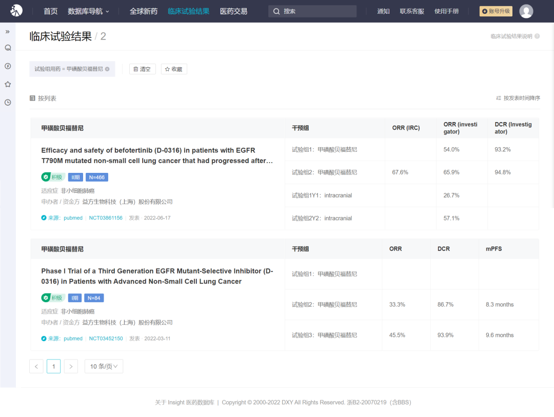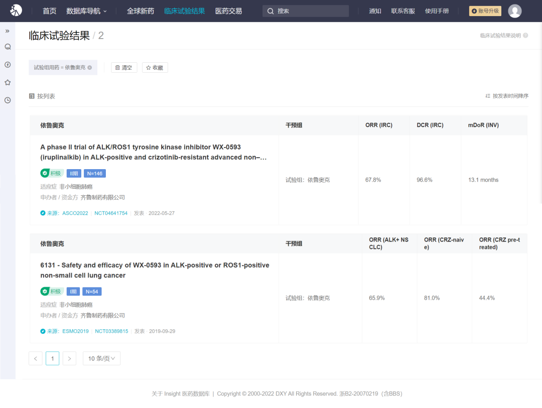 来自:Insight 数据库 临床试验结果模块(http://db.dxy.cn/v5/home/)