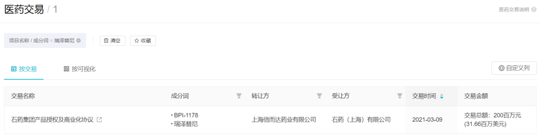 2021 年 3 月,石药集团与倍而达药业订立产品授权及商业化协议,获得 BPI-7711 在中华人民共和国(包括香港特别行政区和澳门特别行政区,但不包括台湾地区)的商业化授权。2021 年 5 月,倍而达药业向 NMPA 递交了新药上市申请。>>点此监控审评进展