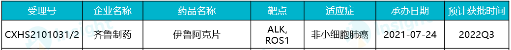伊鲁阿克片是由齐鲁制药自主研发的新型 ALK/ROS1 抑制剂,可抑制不同融合类型的野生型以及 ALK 抑制剂耐药突变的 ALK 激酶活性,同时可有效抑制不同融合类型 ROS1 激酶的活性。目前申报上市的适应症为:既往接受过克唑替尼治疗后疾病进展或对克唑替尼不耐受的间变性淋巴瘤激酶(ALK)阳性的局部晚期或转移性非小细胞肺癌(NSCLC)。