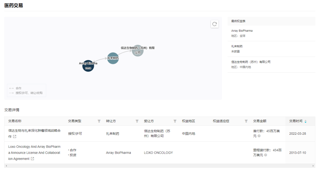 今年 3 月 28 日,信达生物和礼来制药共同宣布双方将深化战略合作,在这项合作中,信达获得了 Retsevmo®(塞普替尼,LOXO-292)获批后的中国大陆独家商业化权利。