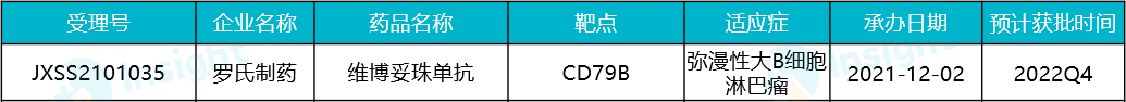 2019 年 6 月,该药被 FDA 批准联合苯达莫司汀和利妥昔单抗用于复发或难治性弥漫性大 B 细胞淋巴瘤,商品名为 Polivy,成为全球首款用于弥漫性大 B 细胞淋巴瘤的 ADC 疗法。
