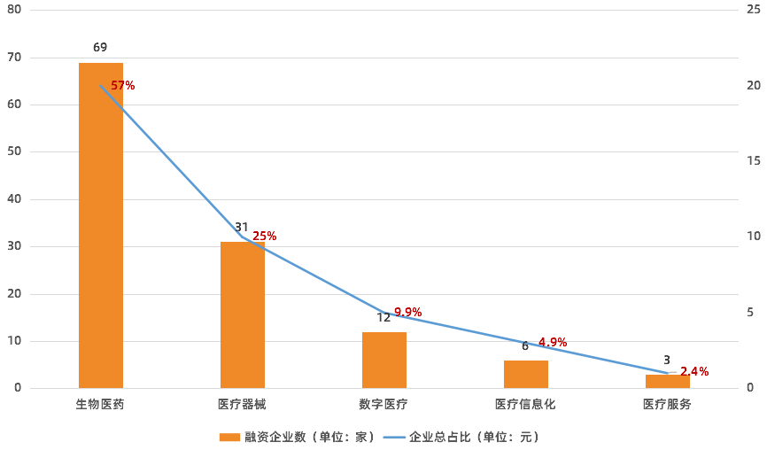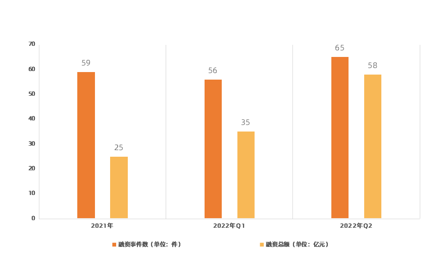 如果这还不能让你有很直观的感受,我们可以将数据与2021年再横向对比一下。据统计,2021年,我国医疗健康领域共发生59起早期投融资事件,融资总额达25亿元。这意味着,2022年上半年,我国早期医疗市场就已超额完成了去年一年的指标。