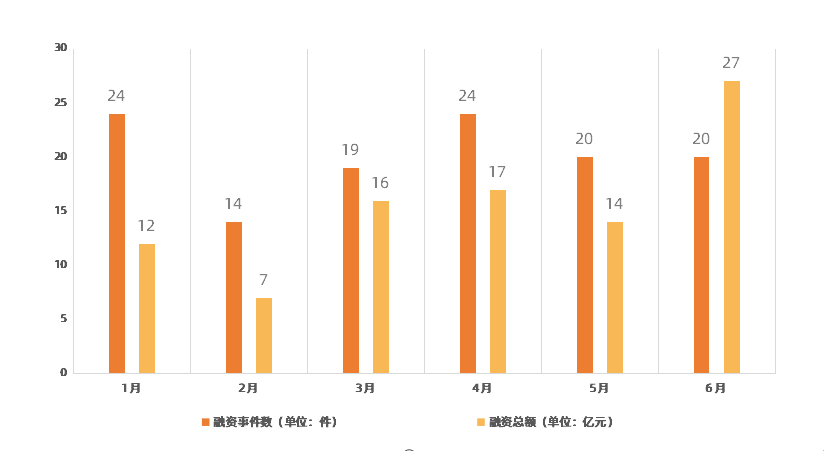 再具体到月份,虽然今年上半年受疫情持续性影响,但早期医疗市场仍趋于稳定态势,每月融资事件数均维持在20件左右。
