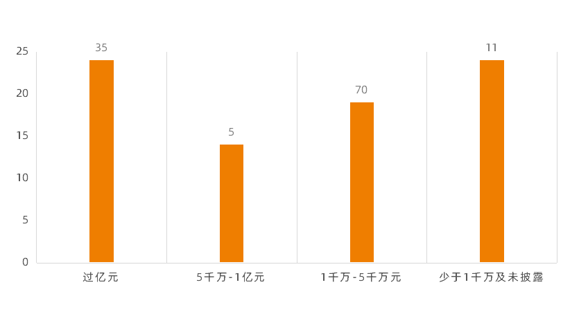其次从投资额来看,整体“单价”上涨,“亿元户”增多。以过往数据来看,早期医疗市场投资都相对“便宜”,大都在百万级或刚刚达到千万级。但现在已经完全不一样了。