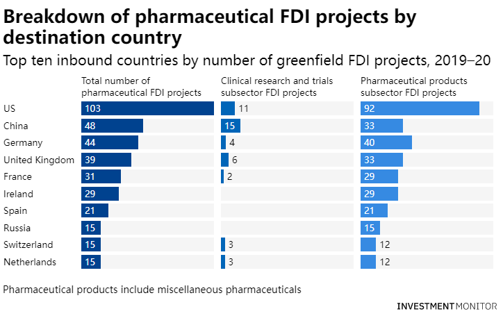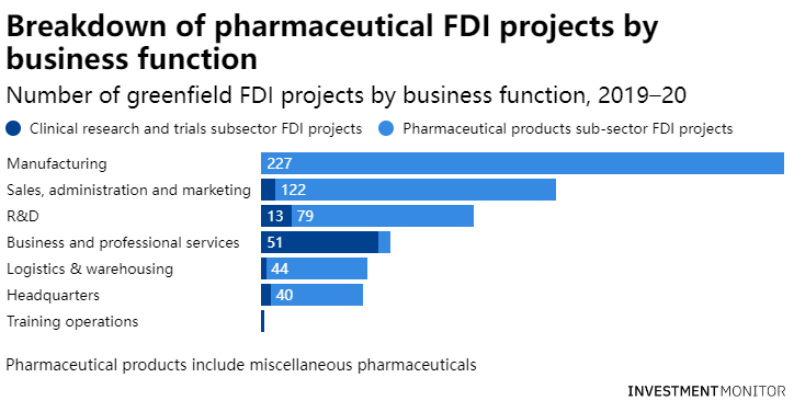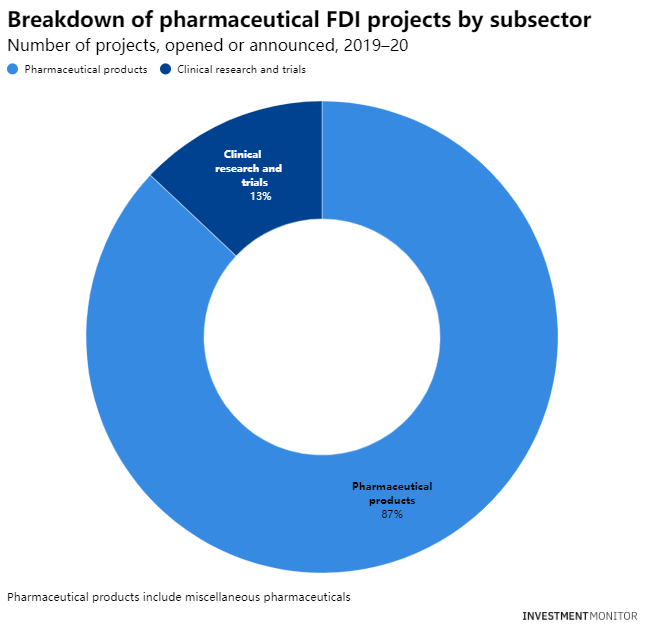 与2019年相比,受新冠疫情的影响,2020年的全球总体FDI数量下降了17.4%。尽管由于疫情的爆发,所有人都在关注医疗保健和制药行业,但包括制药在内的大多数行业都受到了冲击。