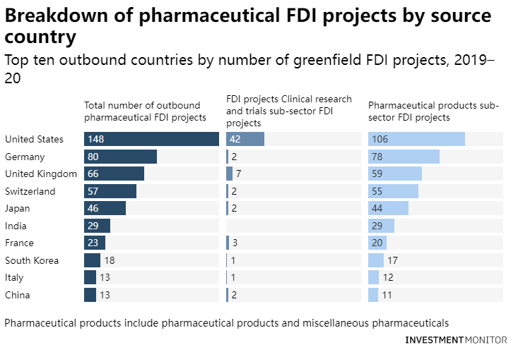 2、制药业FDI全球领先的国家