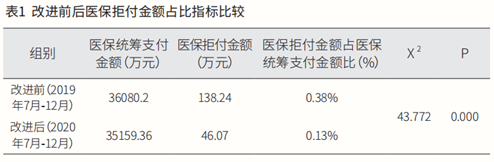 通过健全组织机构、专科专项培训、规范数据源头、推进智能监控、落实奖惩制度等一系列改进措施,统计比较改进前(2019年7月—12月)与改进后(2020年7月—12月)违规数据,共计有效记录81791条,利用SPSS23.0软件对所得数据进行分析,对改进前后的违规数量和金额进行比较,P<0.05表示差异具有统计学意义。改进后医保拒付金额等各项指标均有明显下降(见表1),改进措施实施效果明显。