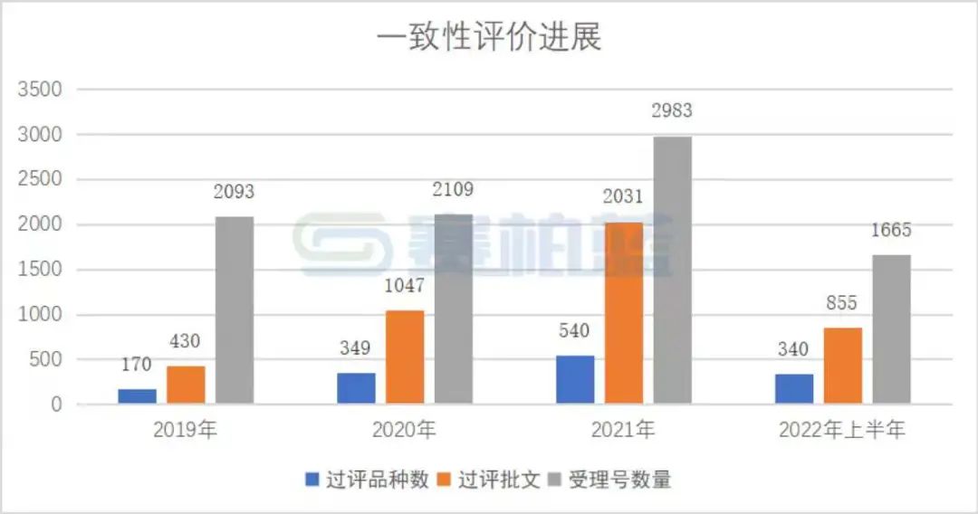 笔者依据2018年国采政策文件发布时间为节点,统计了2019年1月1日到2022年6月30日我国仿制药一致性评价的情况。