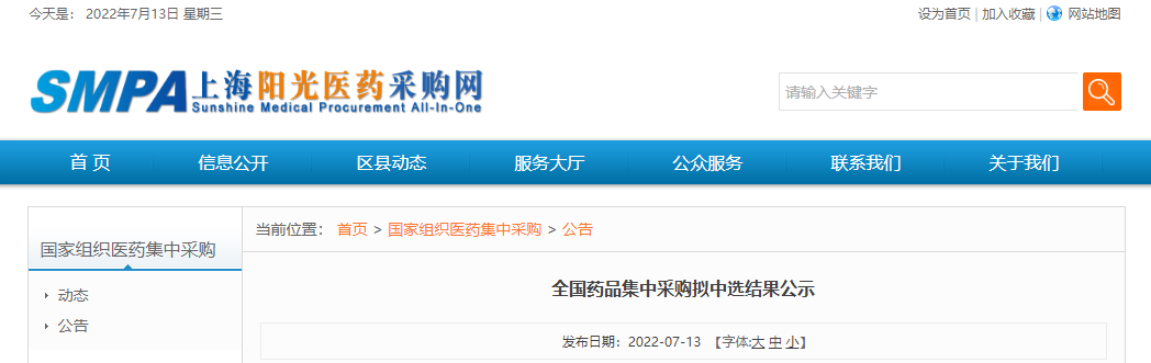 现将全国药品集中采购(采购文件编号:GY-YD2022-1)拟中选结果进行公示,详见附件。