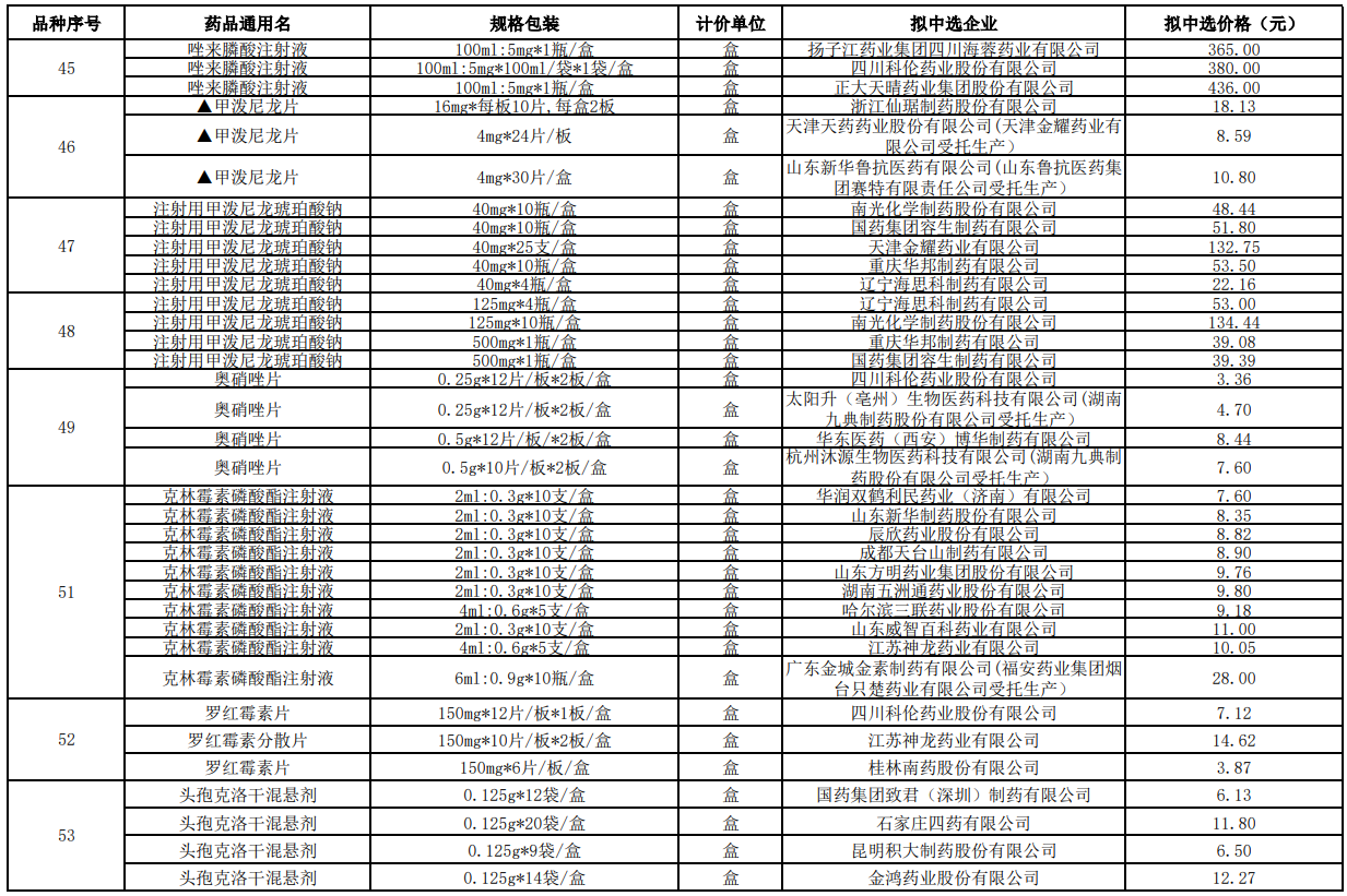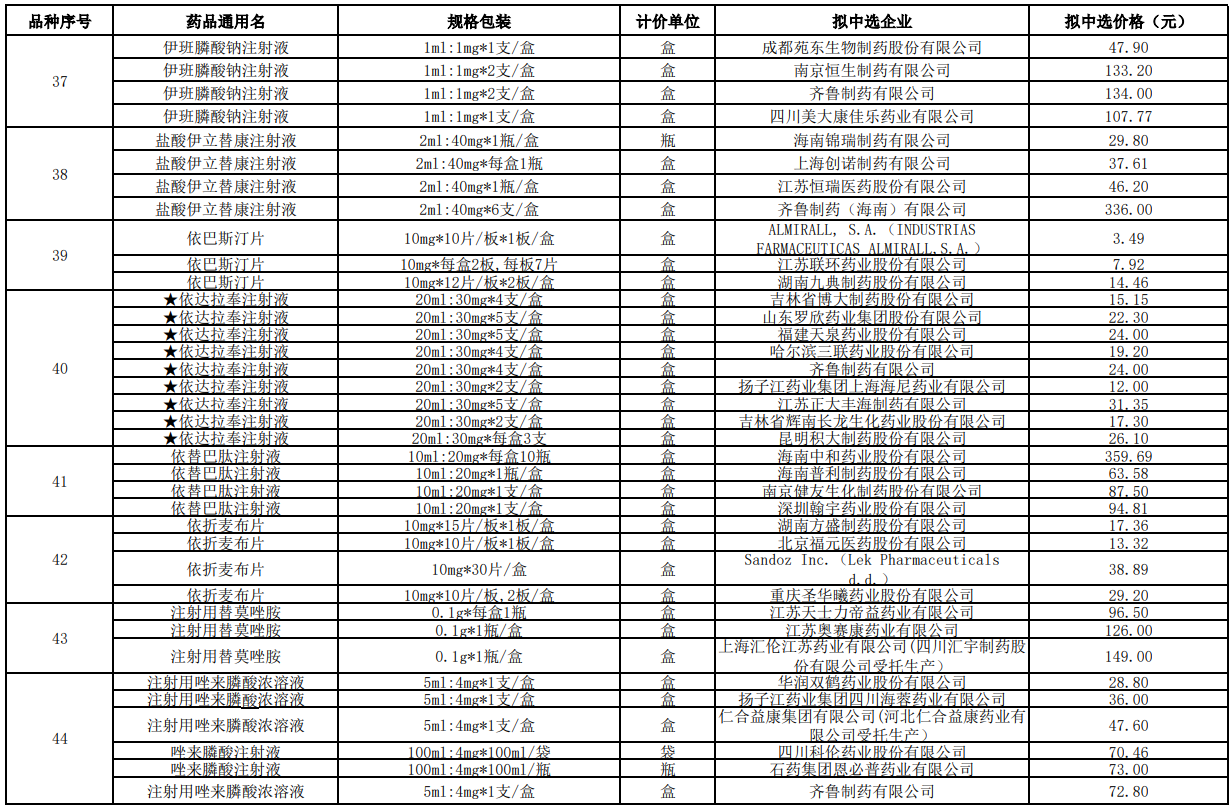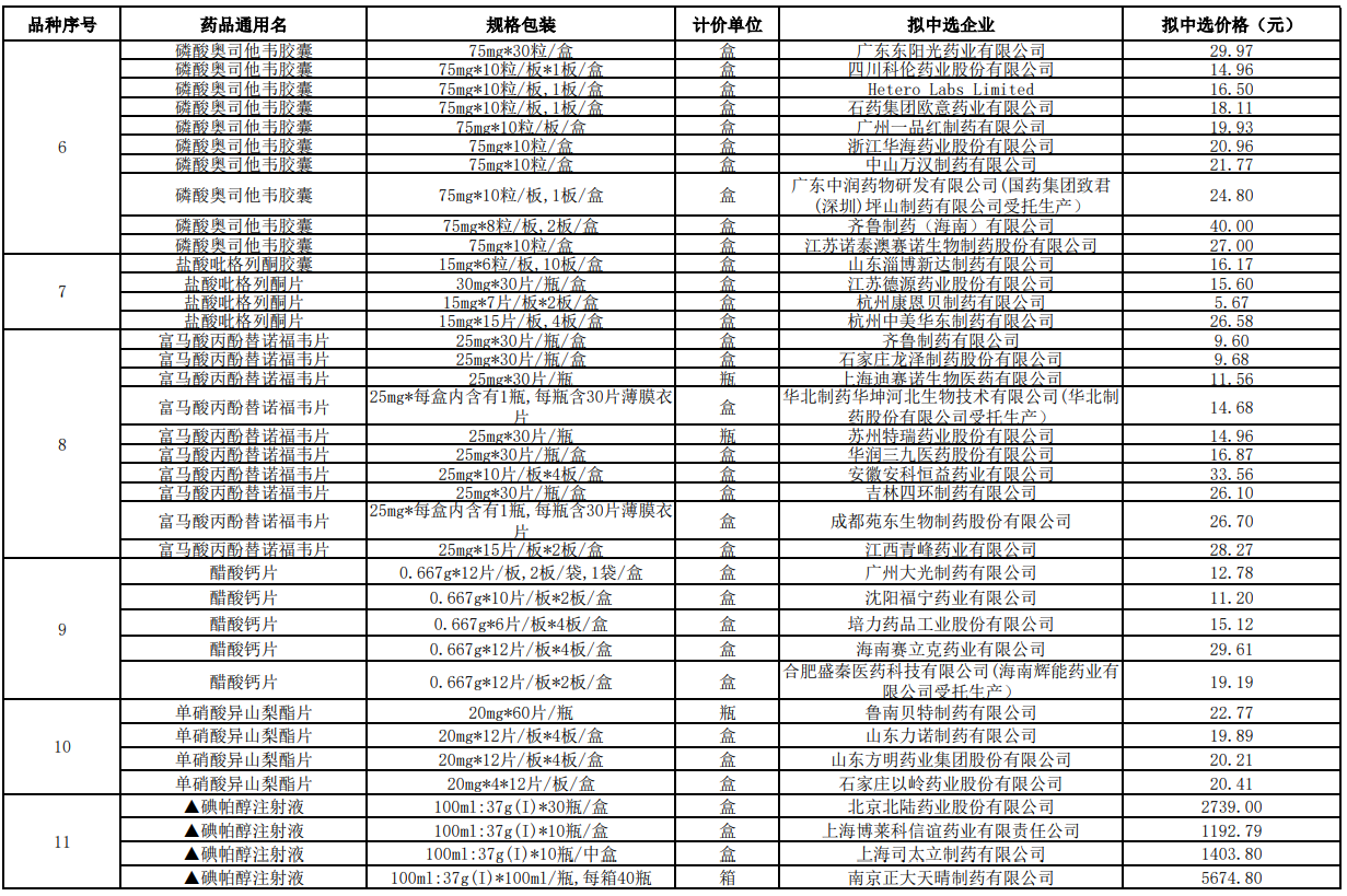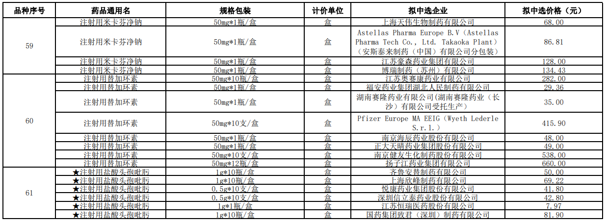 此外,美国辉瑞公司的替加环素、日本安斯泰来公司的米卡芬净、西班牙艾美罗公司的依巴斯汀、意大利博莱科信谊公司的典帕醇等4个原研药中选,平均降价67%。