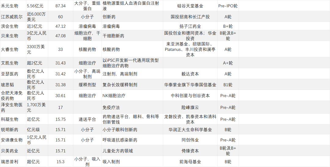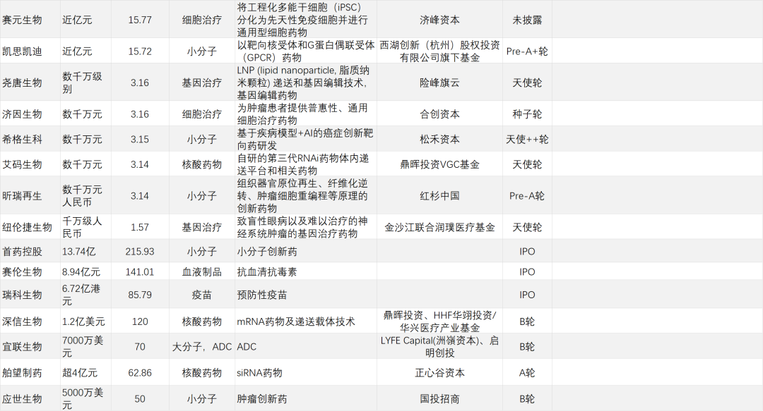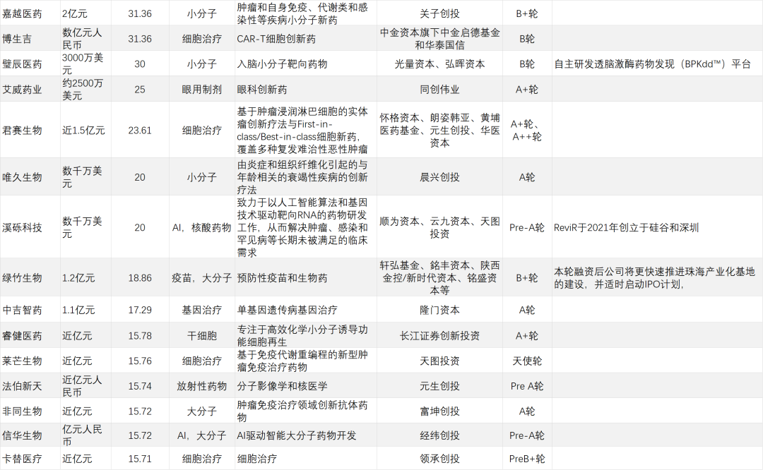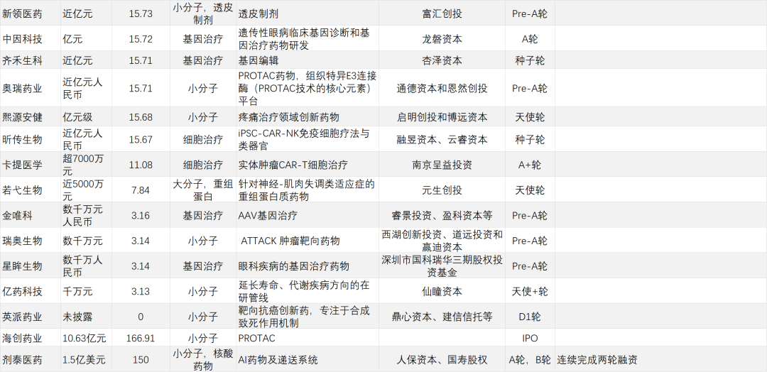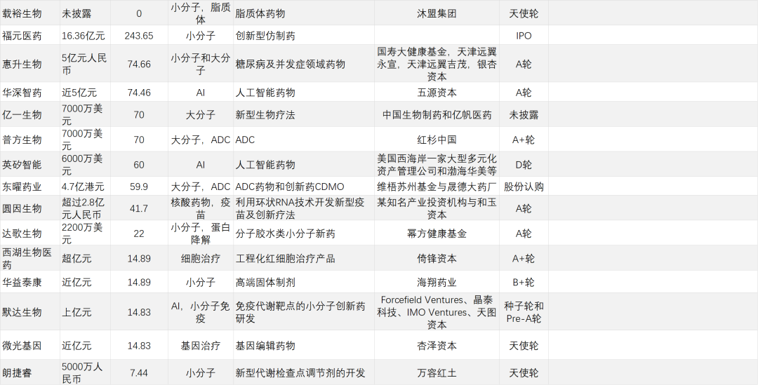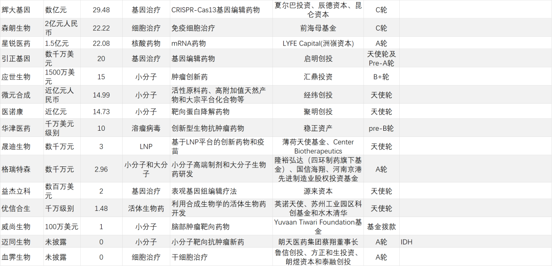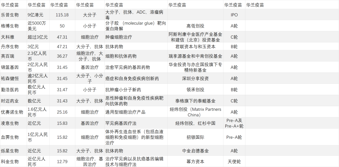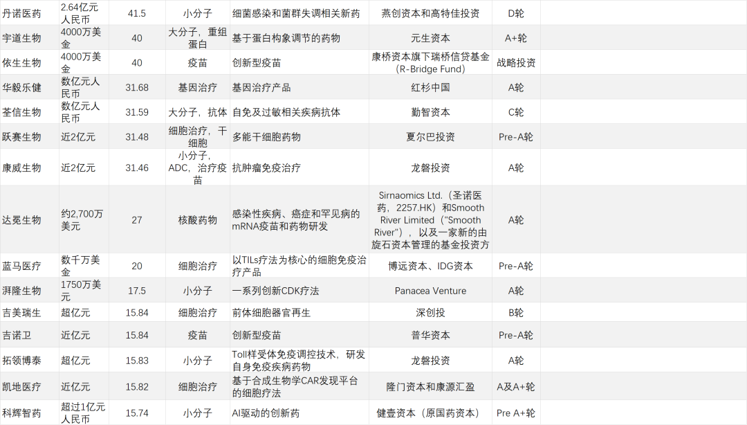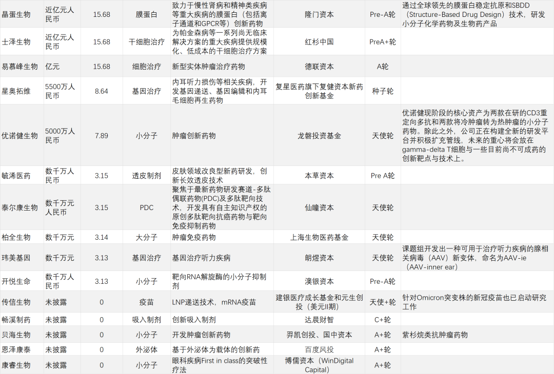 经纬创投上半年共4次出现在研发客研究院的投融资名单上,同样均为Pre-A轮/A轮。投资领域包括AI驱动智能大分子药物开发、通用型细胞治疗、罕见病基因疗法等等,可谓中规中矩。