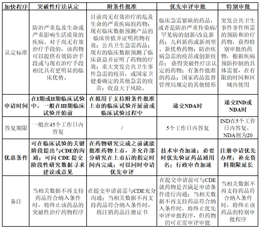那么什么样的新药才能申请到加快上市程序?申请到加快上市程序又能多大程度地加速新药上市呢?根据NMPA颁布的《药品注册管理办法》,将加快上市程序的相关特性总结如下: