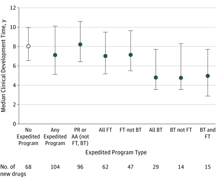 [4] Hwang TJ, Darrow JJ, Kesselheim AS. The FDA's Expedited Programs and Clinical Development Times for Novel Therapeutics, 2012-2016. JAMA. 2017 Dec 5;318(21):2137-2138.