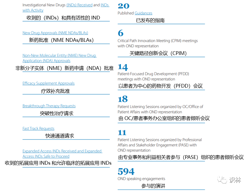尽管COVID-19的大流行使得OND的许多工作面临挑战,但OND通过与CDER办公室合作,在新药批准和其他药物开发活动方面取得了诸多成就(如下图所示),可登录识林查看原文链接内容。