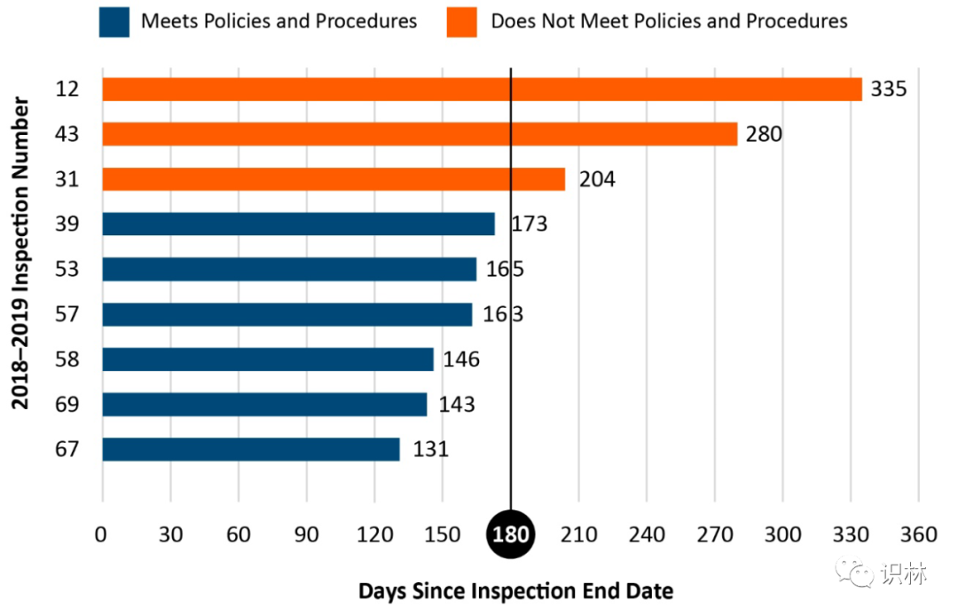 FDA并不总是遵循其发布警告信的政策和程序。在FDA的计划变更后进行的海外场地有因检查中,有9次发出警告信。9封警告信中有3封 (33%) 是在检查结束日期后6个月以上发出的(图3)。