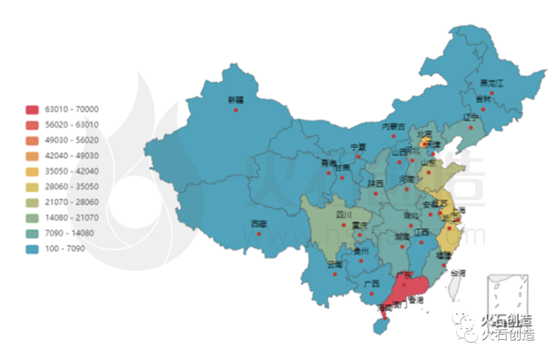 图2:我国生物医药企业投资区域分布图 来源:火石创造产业数据中心