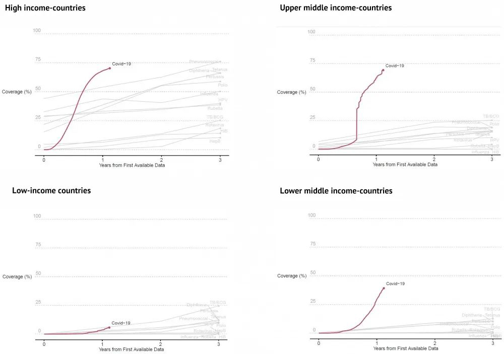 不同收入国家的疫苗接种情况 图片来源|CGD