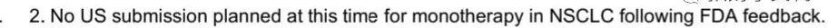 1,基于 FDA 的反馈,诺华/百济已经取消了在美国递交 NSCLC 上市申请的计划;