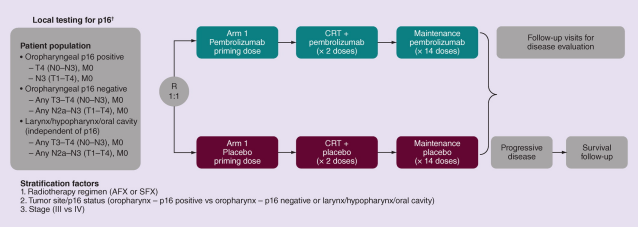 KEYNOTE-412是一项随机、双盲的III期试验研究,旨在探究Keytruda 200mg(Q3W)联合CRT序贯Keytruda维持治疗局部晚期HNSCC相比根治性CRT的疗效和安全性,该研究的主要终点是EFS。该试验招募了约780名新诊断的鳞状细胞癌成人患者,随机接受Keytruda联合CRT,然后接受大约一年的Keytruda维持治疗,或安慰剂加CRT,然后是安慰剂。