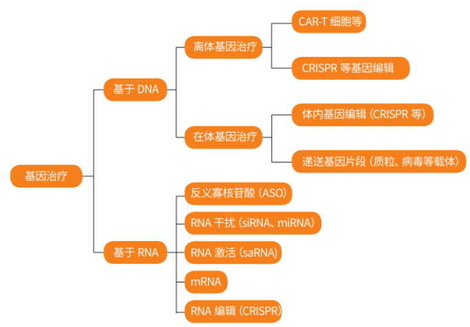基因治疗的分类(图片来源:生物经纬)本文列举了(不包括DNA疫苗和mRNA疫苗在内)已获批上市的40款基因疗法。