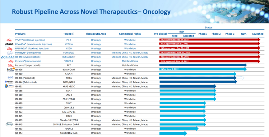 图注:信达生物官网管线