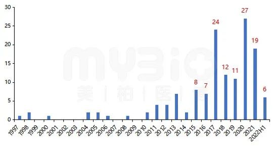 ▲图1-1997年-2022年H1美国FDA批准的伴随诊断产品数量数据来源:FDA备注:此处的数量指FDA的批文数量,包括首次获批、增补适应症及更新联合用药方案