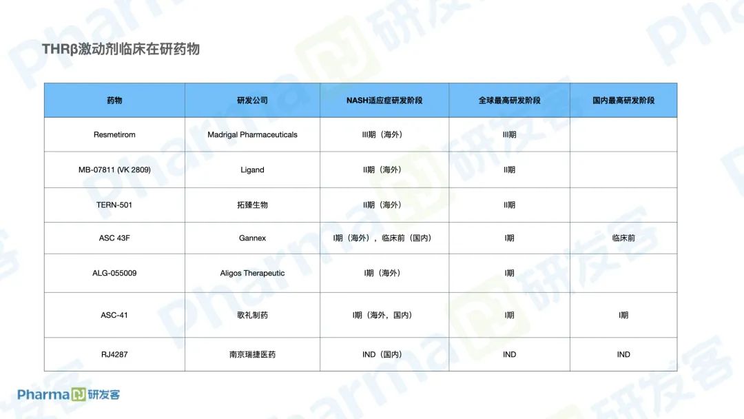 国内公司自主研发的产品中,进展最快的是拓臻生物的TERN-501。今年3月已经在美国启动了单药以及与FXR激动剂TERN-101联合用药的II期临床。