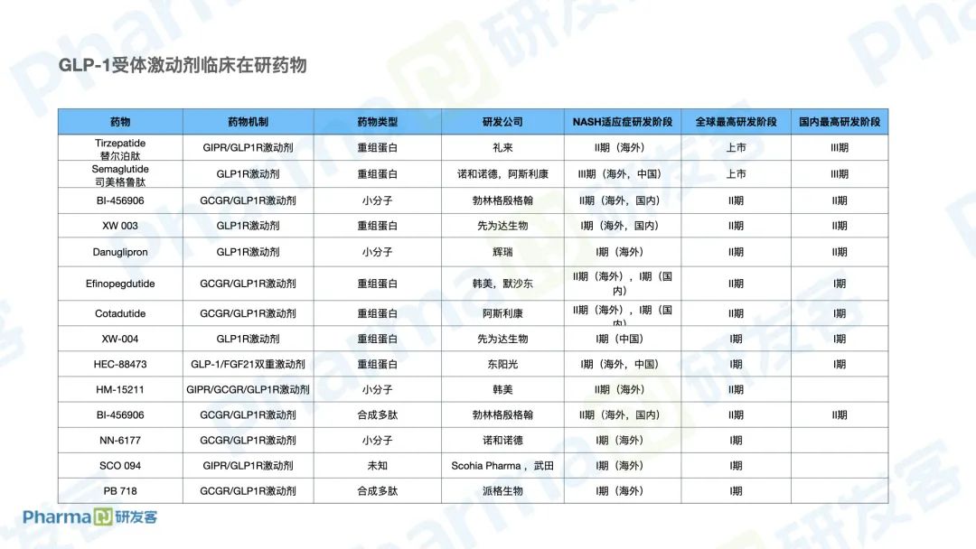 国内的先为达生物专注于研发慢性代谢性疾病的创新药物,有多款GLP-1受体激动剂产品在进行NASH适应症的研究。去年底,该公司将一款临床前长效GIP受体激动剂项目的全球开发和商业化权益授权给赛诺菲。