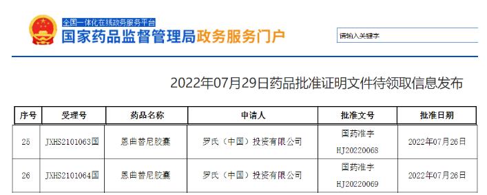 [1]2022年07月29日药品批准证明文件待领取信息发布 . Retrieved July 29, 2022. From https://www.nmpa.gov.cn/zwfw/sdxx/sdxxyp/yppjfb/20220729132536104.html