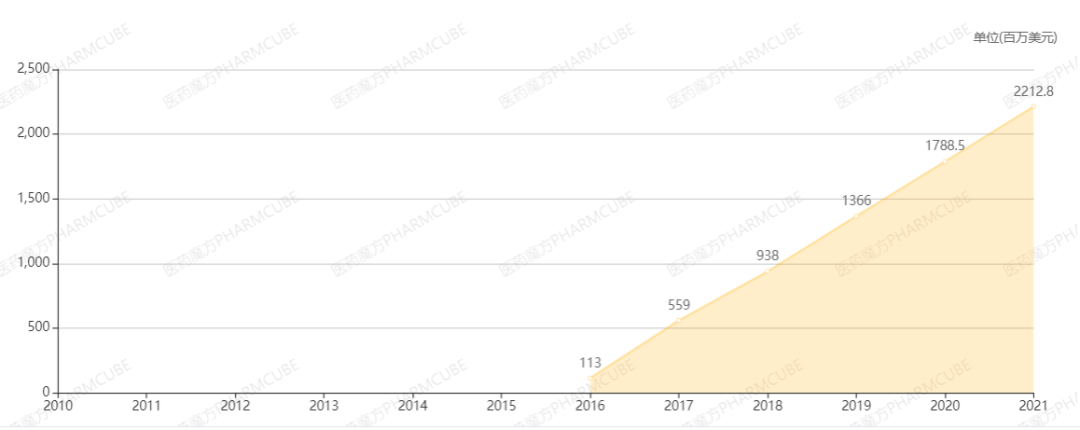 依奇珠单抗是一项靶向IL-17A的人源化的lgG4亚型单抗。2019年8月,该药获NMPA批准上市,用于治疗适合系统治疗或光疗的中度至重度斑块型银屑病成人患者。自上市以来,依奇珠单抗销售额快速增长,2021年收入22.13亿美元。