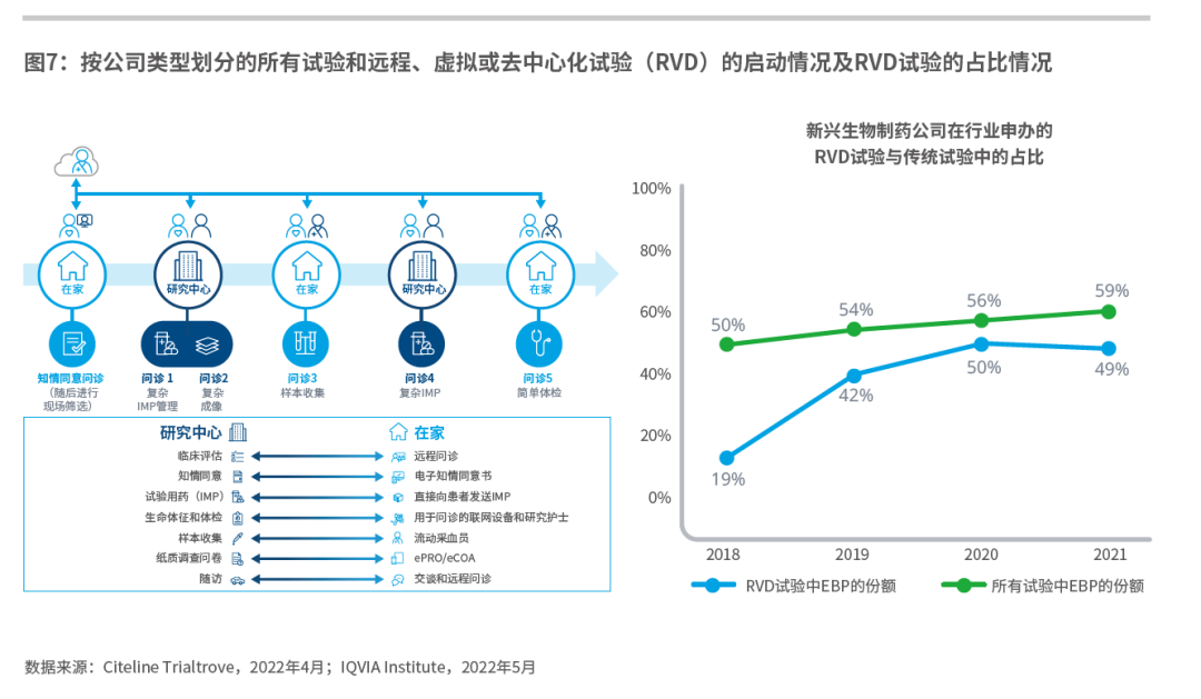 大多数试验包括RVD试验的某些组成部分,RVD元素也不断被纳入试验操作标准,尤其是在疫情期间。在某些情况下,RVD试验会影响部分试验操作,从而使一些流程更为便利。对于某些疾病领域来说,完全远程是可行的,尤其是那些更关注患者报告结局的试验。