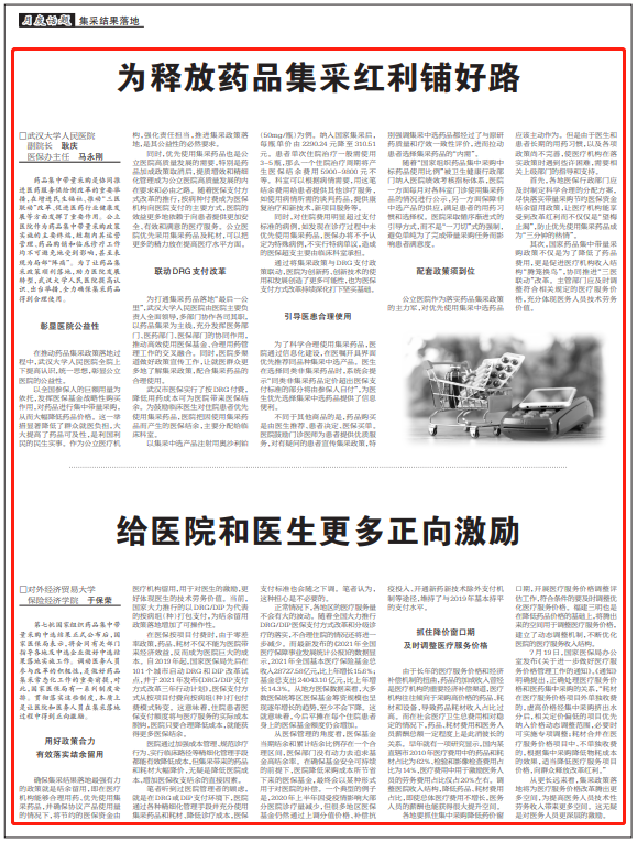 →武汉大学人民医院副院长耿庆、医保办主任马永刚:为释放药品集采红利铺好路