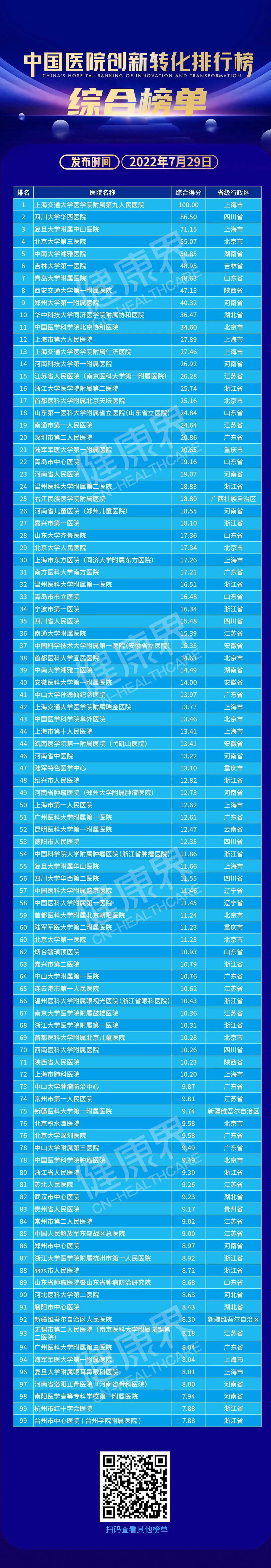 7月29日,由中国医学创新联盟(CMIA)、海南博鳌乐城国际医疗旅游先行区管理局、海南博鳌医学创新研究院、健康界和北京康卫医创科技有限公司共同推出,诺华(中国)特别支持的《中国医院创新转化排行榜》(简称「排行榜」)重磅发布。博鳌乐城先行区医工转化平台也在同期正式启动!线上线下百余位政府单位领导、院士专家、医院院长、高校院所专家和产业专家共同见证。