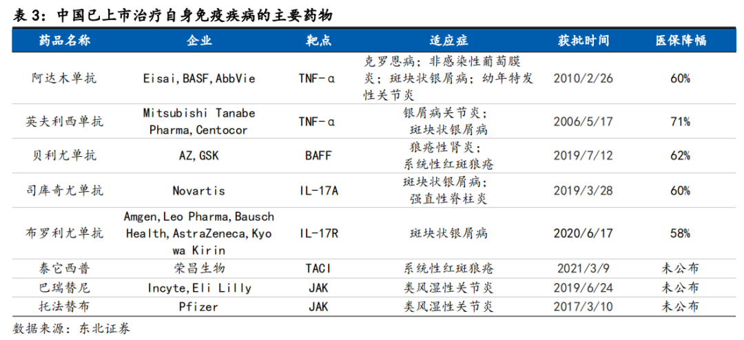 除了荣昌生物以外,先声药业、三生国健、华东医药、恒瑞医药、诺诚健华等国内药企也瞄准了自身免疫赛道。