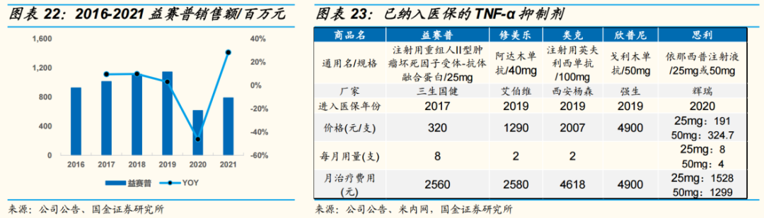 三生国健虽然目前仅有一款自身免疫治疗药物——益赛普(重组人II型肿瘤坏死因子受体-抗体融合蛋白)获批上市,但却极具分量。