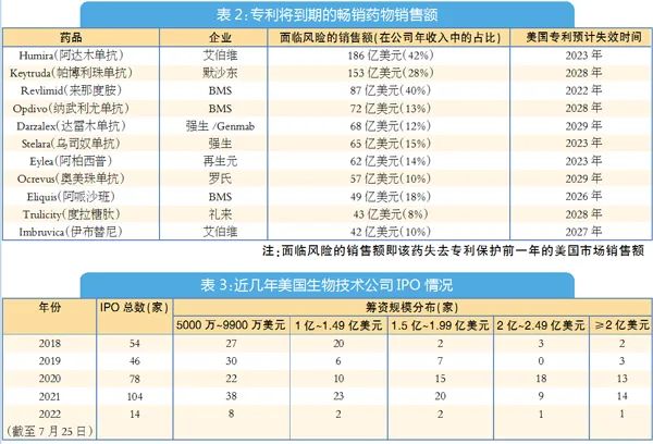 事实上,大型制药企业并不缺乏并购动力。从2023年起,药企巨头将面临新一轮的“专利悬崖”,艾伯维的阿达木单抗(Humira)、强生的乌司奴单抗(Stelara)与再生元的阿柏西普(Eylea)等畅销药品将陆续在美国市场失去专利保护。值得注意的是,艾伯维、BMS与强生均有不止一个支柱产品面临销售下滑的风险。