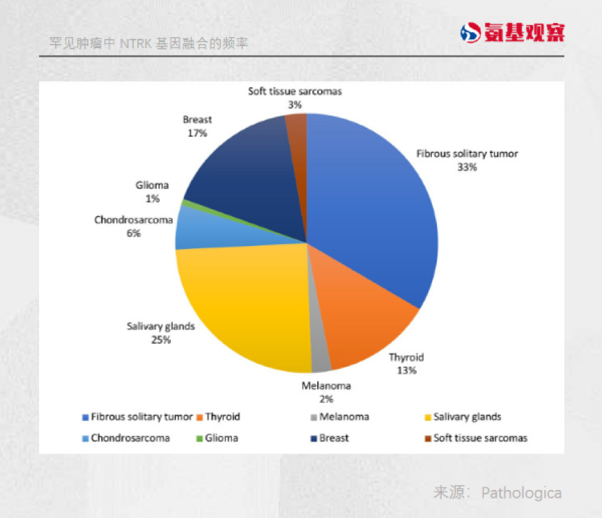 据临床数据显示,像非小细胞肺癌、结直肠癌、浸润性乳腺癌这些患者群体较大的癌种,发生携带NTRK基因融合变异的患者不到1%。