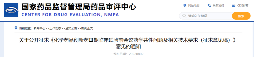 化学药品创新药Ⅲ期临床试验前会议药学共性问题及相关技术要求(征求意见稿)