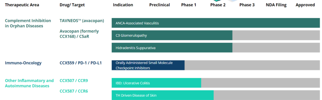 ▲ChemoCentryx的研发管线(图片来源:ChemoCentryx公司官网)