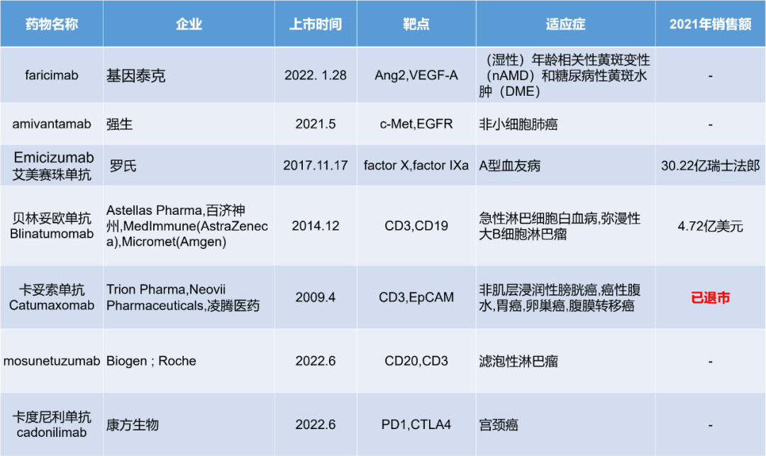 目前,全球已有7个双抗获批上市,具体信息统计如下: