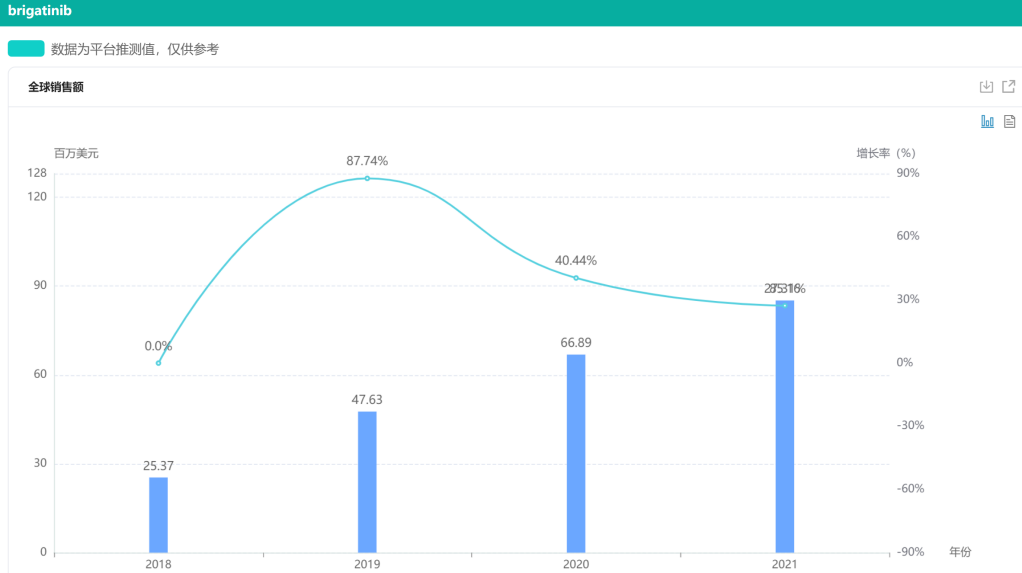 布格替尼历年全球销售趋势