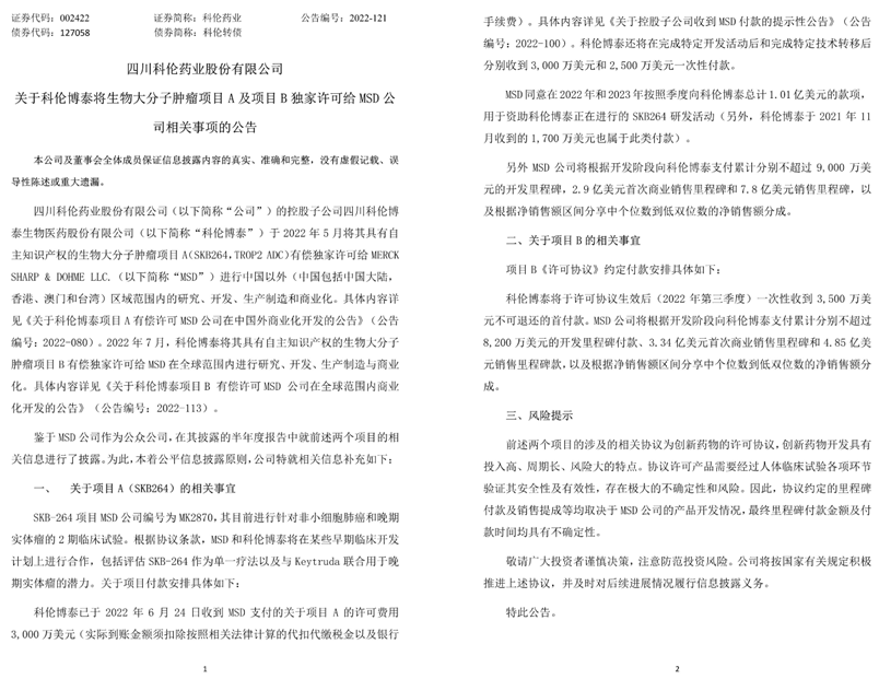8月5日,科伦药业发布公告,透露了更多的信息。