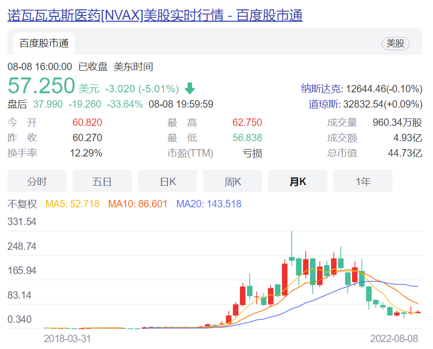 受此消息影响,Novavax的股价盘后大跌34%,目前市值仅30亿美元。