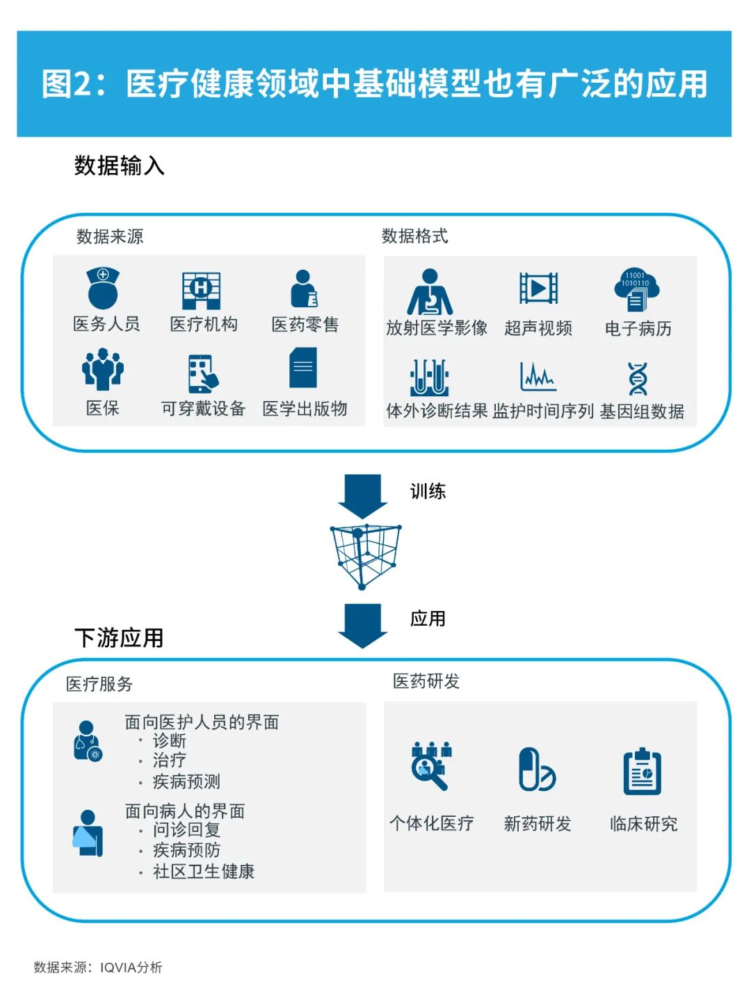 人工智能技术日新月异,发展迅猛,大型基础模型(Foundation Models)的研究是人工智能的新前沿。基础模型是通过自监督学习,在大规模未经标记的数据上训练的大型人工智能模型,该模型可以适应广泛的下游任务。在医疗健康领域,基础模型也有广泛的应用。