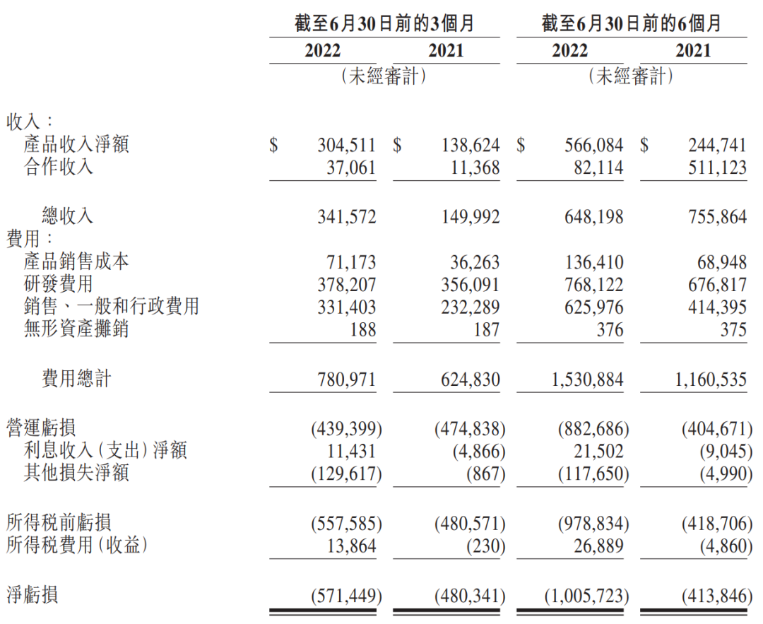 营收(产品收入+药物授权收入)大于开支——产品销售成本(对应A股营业成本)、研发费用、销售及市场推广开支(对应A股销售费用)、一般及行政开支(对应A股管理费用)、财务费用(含利息收入支出)、其他损失净额、无形资产摊销、所得税费用之和,方可实现盈亏平衡。
