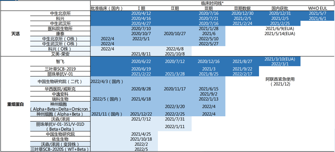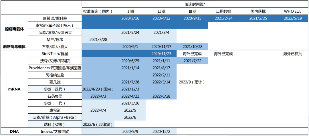 尚有多款国产新冠疫苗处于临床试验阶段 数据来源:各公司公告、官网,各临床试验注册平台,国泰君安证券研究