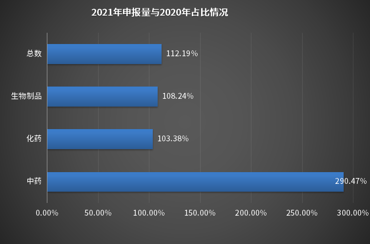 图2 2021年申报受理情况与2020年比较情况 数据来源:药智数据