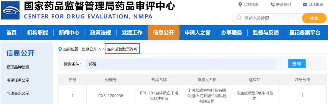 2022年8月16日,聚焦于基因和细胞治疗的上海邦耀生物科技有限公司(以下简称“邦耀生物”)宣布,其针对输血依赖型β-地中海贫血的基因疗法产品“BRL-101自体造血干祖细胞注射液”的临床试验申请(IND),今日正式取得中国国家药品监督管理局药品审评中心(CDE)的批准!