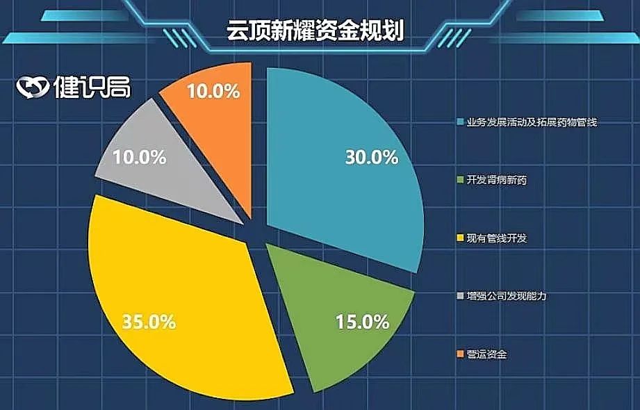 面对这一笔巨款,云顶新耀的近期规划是:将30%用于拨支与公司主要业务一致的业务发展活动及拓展药物管线,15%用于持续开发原发性IgA肾病新药,35%用于余下的现有管线,10%用于增强公司的发现能力,另外10%用作营运资金及一般行政用途。