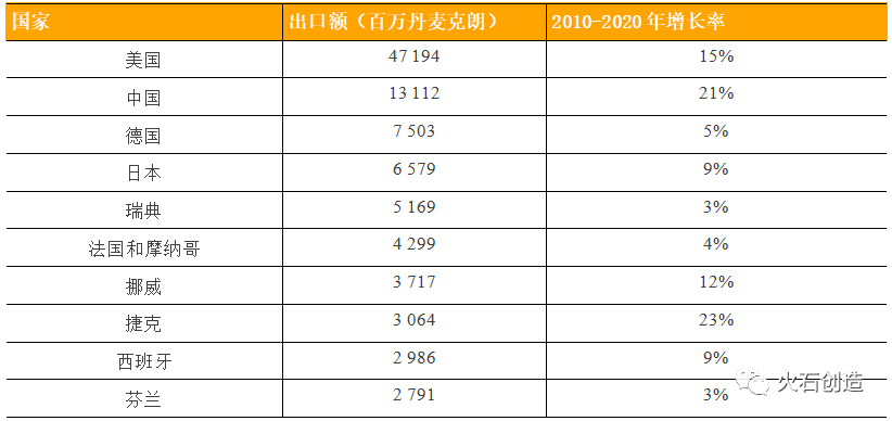 表1:2020年丹麦生命科学的主要出口市场